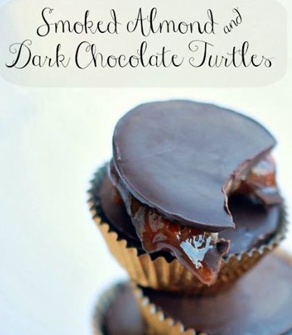 SMOKED ALMOND DARK CHOCOLATE TURTLES AND CARAMEL SCIENCE
