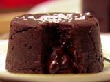 Over a double boiler, melt the butter and chocolate, whisking until smooth. Whisk in the sugar and transfer to a medium bowl. Whisk in the eggs and flour until smooth. Pour the batter into the prepared ramekins about 2/3 full. Place 1 of the small chocolate squares right in the middle of each cake and press down with your fingers so it rests in the middle of the ramekin. Bake the cakes until slightly puffy and set around the edges, 20 to 25 minutes. Don't worry if your cake tester comes out wet, the center should still be loose.