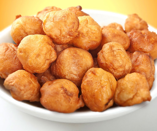Turn pancake puppy when the pancake dough ball turns brown, flip over using a slotted spoon, and cook until the other side has been browned.