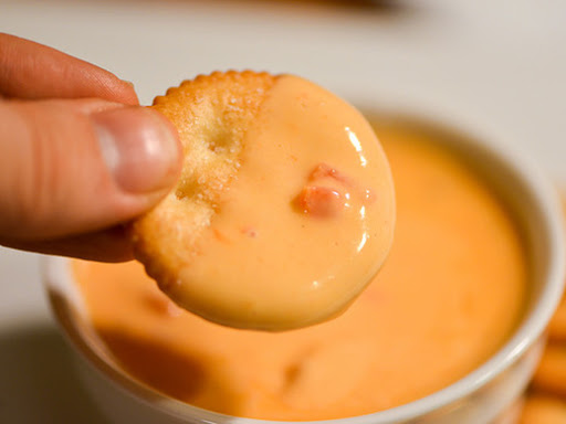 Bring evaporated milk to a boil in a medium saucepan over medium-high heat. Reduce heat to low and add in cheese. Stir constantly until cheese is melted and smooth. Stir in chopped red pepper, mayonnaise, sour cream, and hot sauce. Season with salt to taste. Transfer to a bowl and serve immediately.