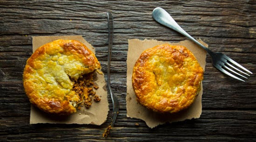 4. Increase the oven temperature to 450°. On a lightly floured work surface, roll out the second piece of puff pastry to a thickness of ⅛-inch. Cut 4 (4¾-inch) circles from the dough, saving the scraps for another use. Fill the baked, cooled pie shells with the cooled meat mixture. In a small bowl, whisk together the egg with 1 teaspoon of cold water. Brush the egg wash on the top edges of the baked pie shells. Place a raw dough circle on top of each pie and gently press to seal. Cut a few vents into the top. Brush the tops with more egg wash. Set on a baking sheet and bake until the top is golden, about 15 minutes. Eat warm with more ketchup, if you choose.