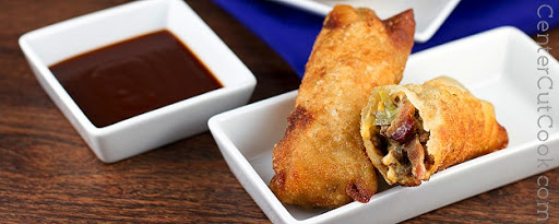 Spoon 1/4 cup of the filling on the cheese. Then use your finger or a pastry brush to brush the edges of the wrapper with water. This will help the egg roll seal.