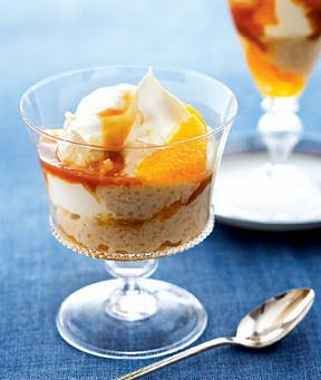 4. For each parfait, spoon 1⁄4 cup orange rice pudding into a glass, then top with 3 orange sections, 1 Tbsp thawed reduced-calorie whipped topping and 1 tsp fat-free butterscotch caramel topping. Repeat layers