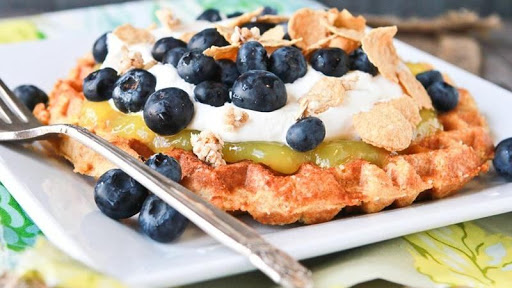 Top waffles with lemon pie filling and whipped topping. Sprinkle with blueberries and additional cereal. (Waffles are large; cut in half to serve, if desired.)