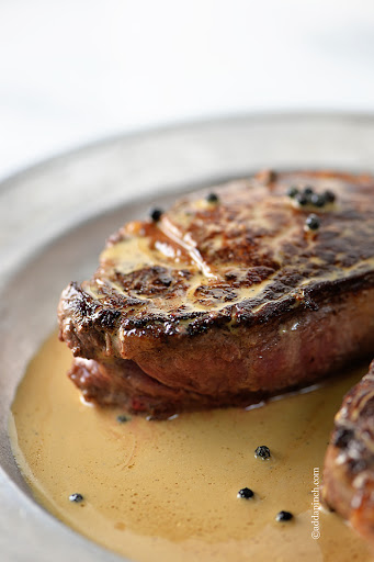 Cook skillet steak according to reach temperature preferred. Remove steaks from skillet to a plate and set aside to rest as you prepare the peppercorn sauce.