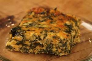 In a large bowl mix together the spinach and cheeses. In a separate bowl whisk the eggs adding the flour and butter in three batches. Then mix it all together. Add Greek seasoning and hot sauce to taste and mix again. Put it in a 9×13 casserole dish and bake for 45-minutes until a knife comes out clean.