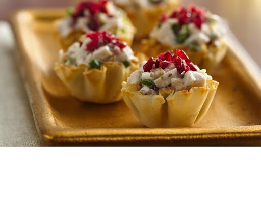 To make the cups ahead, prepare the filling without the cranberries. Before serving, add the cranberries, fill the shells, and garnish.