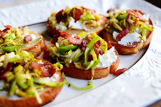 Bruschetta with Leeks, Goat Cheese, and Bacon