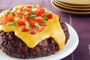 MIX meat, cracker crumbs, 2 Tbsp. Cheez Whiz, 1/4 cup onions and egg until well blended. Shape into 3/4-inch-thick round loaf in foil-lined pan; brush with barbecue sauce.