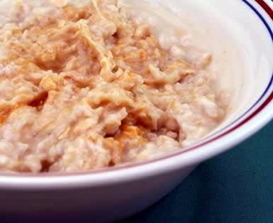 Put desired amount of oatmeal in bowl and sprinkle with salt. Cover with warm water, about 1/2 inch above oatmeal. (This will depend on how thick you like your finished oatmeal. I like my oatmeal rather runny, so decrease the water if you want a thicker oatmeal.)