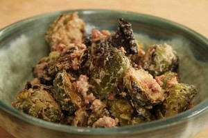 Mix sauce together very well, then fold in the roasted Brussels sprouts. Serve immediately.