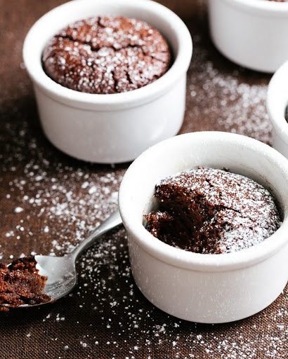 Butter two 5-ounce ramekins. Pour in the batter, and bake for 35 minutes until a toothpick comes out nearly clean.