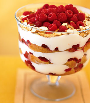 Cut the cake into 1″ chunks and place 1/2 of the chunks in the bottom of a trifle bowl.