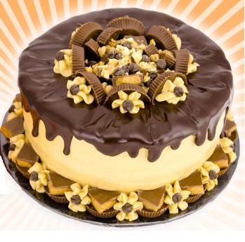 Cover in peanut butter mousse. If desired, place quartered peanut butter cups in the filling between the two cake layers.