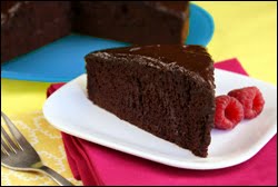 In a large bowl, combine cake mix, sugar, baking powder, and salt. Stir well. Add chocolate-cocoa mixture and egg substitute. Whisk until completely blended.