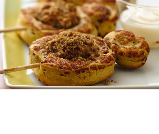 4 Bake 12 to 17 minutes or until golden brown and dough around center of roll is no longer doughy. Cool 5 minutes. Meanwhile, stir reserved icing into remaining yogurt for sauce. If desired, cut off sharp ends from sticks with kitchen scissors. Loosen rolls and remove from cookie sheet. Serve with yogurt sauce for dipping.