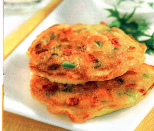 1. Mix flour with baking powder, salt and pepper; whisk in eggs and milk until smooth. Stir in hashbrowns and green onion until evenly distributed.