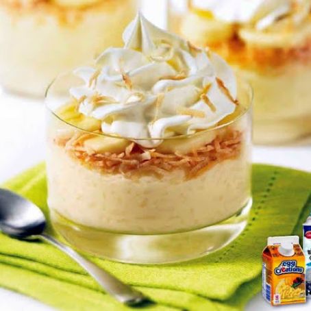 To assemble parfaits, layer ¼ cup (50 mL) cold rice pudding with toasted coconut, sliced bananas and whipped cream in parfait or straight-sided glasses; repeat layers once. Garnish tops with additional whipped cream and coconut. Serve immediately.