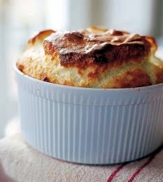 Whisk one quarter of the egg whites into the cheese sauce to lighten and then fold in the rest. Pour into the soufflé dish, then smooth the top. Draw a large circle on top with the spatula to help the soufflé rise evenly, and place in the middle of the oven. Turn the temperature down to 375 degrees. Bake for 30 to 35 minutes (don’t peek!) until puffed and brown. Serve immediately.