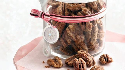 2. Add pecans; cook 2 to 3 minutes, stirring constantly, until coated. Spread mixture onto parchment-lined cookie sheet.