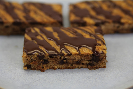 If you are going to do the chocolate drizzle, simply melt chocolate and your chosen fat together. Use a spoon to drizzle over the top. You can let the drizzle harden at room temperature or pop it in the fridge if you’re feeling impatient (I cut squares before drizzling, but you don’t have to).
