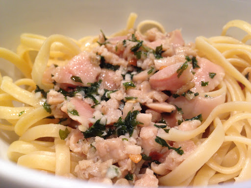 - 1 (8 oz) pkg. linguine or thin spaghetti, cooked and drained