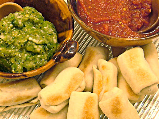 Serve with red and green dipping sauces. You may prefer to keep them a little chunkier. I used a simple tomatillo recipe for this round, along with a classic salsa roja - about 1½ cups of each. They'll be easier to scoop onto individual serving plates.