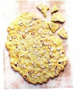3.Press dough into an even 1/4-inch thickness on a parchmentlined baking sheet. Brush with egg wash; sprinkle with almonds and remaining tablespoon sugar. Bake until golden, 22 to 25 minutes. Let cool on a wire rack. Break into pieces.