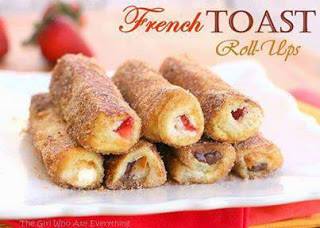 Place about 1-2 teaspoons of your chosen filling 1 inch from one end of the bread in a strip. Roll the bread up tightly and repeat with the remaining pieces of bread. I really like cream cheese with diced strawberries as one combination and Nutella with diced strawberries as another combination.
