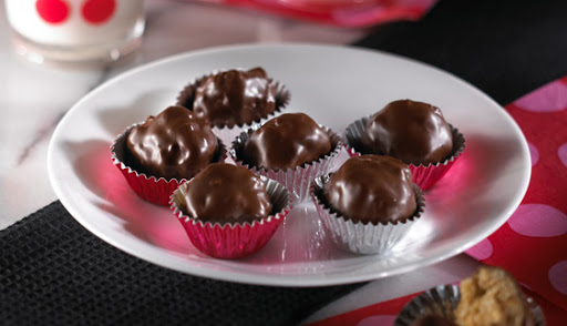 Using a toothpick or fork, dip the balls into the melted chocolate until well coated.
