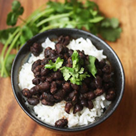 Transfer the rice to a platter. Top with the beans and garnish with cilantro.