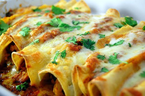 Reduce heat to 400. Remove enchiladas and pour sauce evenly on top. Top with the remaining cheese. Cover dish with foil, and bake an additional 20 minutes, or until heated through.