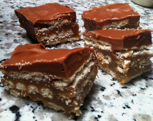 6. Remove from heat and spread half of butter mixture evenly over crackers.