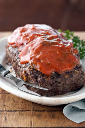 In a large bowl, combine all the meatloaf ingredients and mix well. Press the mixture into a 9 by 5-inch loaf pan. Bake for 30 minutes. Remove from the oven and brush some of the glaze over the top of the meatloaf. Bake for 30 minutes more. Remove from oven and let stand for 5 minutes. Turn the meatloaf out onto a serving platter and spoon the remaining glaze over the top before serving.
