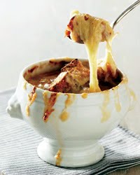 Hugue Dufour makes a pork broth for his French onion soup using bacon for smokiness and a pig's foot for richness. Omit the pig's foot for a lighter broth.