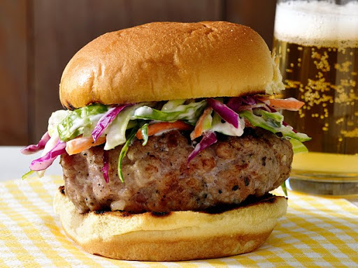 Serve the patties on the buns; top with coleslaw.