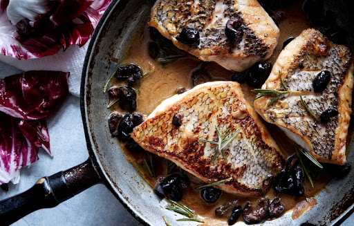 Black Bass with Warm Rosemary-Olive Vinaigrette