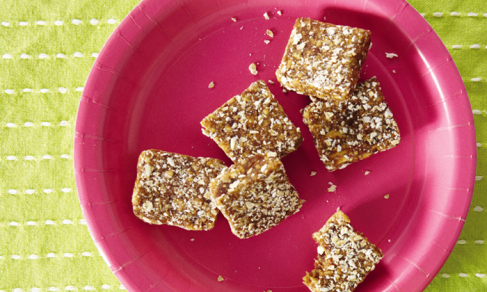 4. Cut the block into 1-inch squares and roll the squares in the reserved ground oats until the squares are evenly coated.