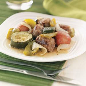 - 1 pound Italian sausage links, cut into 1-1/2-inch pieces
