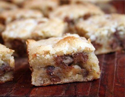 6. Bake for 24 to 28 minutes or until the top is golden brown. Remove the pan to cool on a wire rack. After the cookies have cooled for 45 minutes or so, remove the cookies from the pan by grasping the ends of the foil or parchment paper and lift from the pan. Remove the cookies to a cutting board and cut them into the desired sizes and shapes using a ruler to measure the cuts uniformly and a sharp, serrated knife to cut through the nuts cleanly.