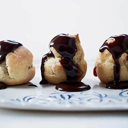Salted-Caramel Cream Puffs with Warm Chocolate Sauce