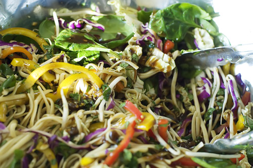 - 1 package linguine noodles; cooked, rinsed and cooled