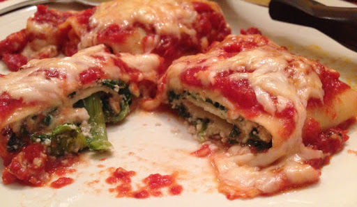 6. Stir in ricotta and cup Parmesan to the spinach; adjust seasonings.