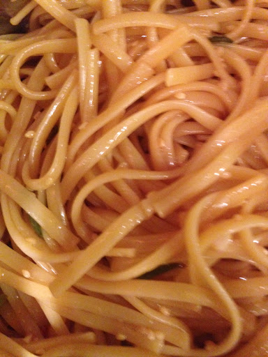 2.Meanwhile, place a saucepan over medium-high heat. Stir in garlic, sugar, oil, vinegar, soy sauce, sesame oil, and chili sauce. Bring to a boil, stirring constantly, until sugar dissolves. Pour sauce over linguine, and toss to coat. Garnish with green onions and sesame seeds.
