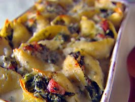 Warm the olive oil in a large, heavy skillet over medium heat. Add the pancetta and cook until lightly golden, about 5 minutes. Remove the pancetta from the pan with a slotted spoon and transfer to a large bowl. Add the spinach, ricotta cheese, asiago cheese, pepper, and nutmeg. Stir to combine. Stuff the shells with about 2 tablespoons of the spinach mixture each and place the stuffed shells in a large, buttered baking dish.