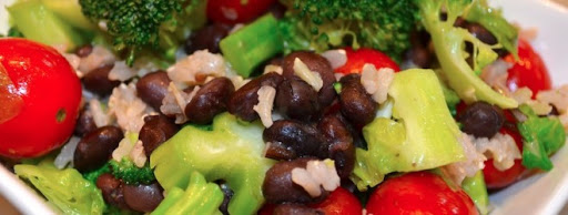 Follow direction for rice to make 2 cups cooked rice. In large fry pan add water and heat on high until near boiling. Add broccoli, cherry tomatoes, brussels sprouts and stir until veggies are a bright colour. Add black beans, sesame oil and braggs. Stir well together. Heat through and serve with a nice green salad.