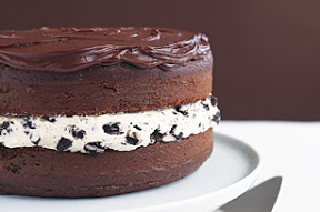 PLACE 1 cake layer on plate, spread with cream cheese mixture. Top with remaining cake layer. Spread top with chocolate glaze; let stand 10 min. or until firm. Keep refrigerated.