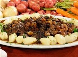 Pour sauce over meat and vegetables. Cover and simmer 2 to 3 minutes, basting the meat and vegetables with the sauce several times. Serve in casserole, or arrange stew on a platter surrounded with potatoes, noodles or rice, and decorated with parsley.