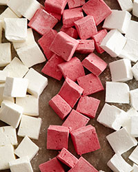 In a medium bowl, whisk the confectioners’ sugar with the cornstarch and remaining powdered fruit, if using. Invert the marshmallow onto a cutting board dusted with confectioners’ sugar. Using a lightly greased knife, cut the marshmallow into 1 1/2- to 2-inch squares. Toss the marshmallows in the confectioners’ sugar mixture. Store the marshmallows in an airtight container for up to 2 weeks.