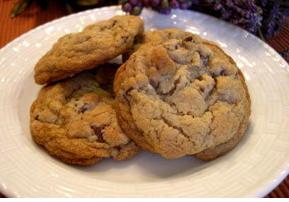 3. Add the walnuts and chocolate chunks. Spoon the dough into walnut-sized mounds onto ungreased cookie sheets.